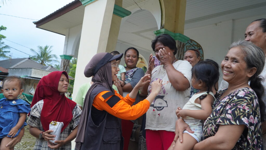 Di Desa Air Hitam, Selasa (2/12/2025), Chiki bersama relawan Dompet Dhuafa mengajak sekitar 40 anak bermain dalam layanan Psychological First Aid (PFA), mencoba mengalihkan sejenak duka dan kecemasan mereka. Ia juga ikut membagikan makanan untuk sekitar 500 penyintas di sekitar pos pengungsian.