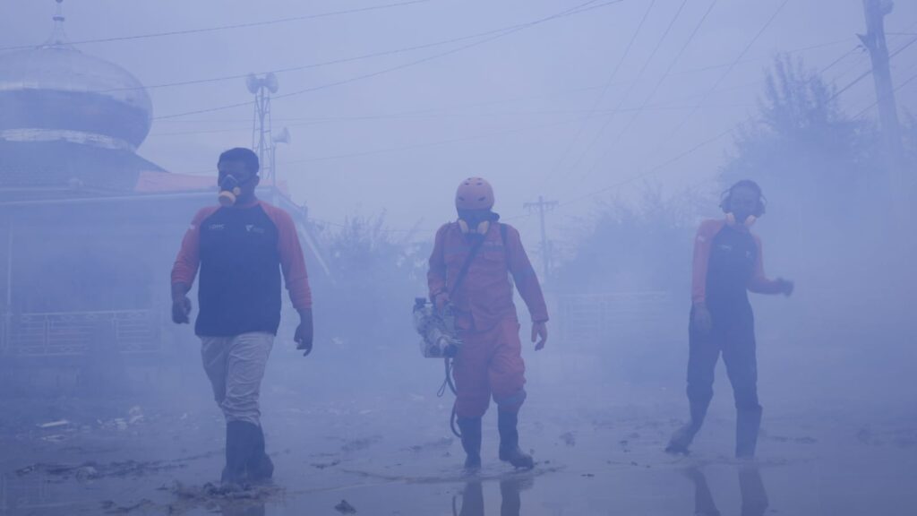 Ahmad Yamin, Penanggung Jawab Respons Bencana DMC Dompet Dhuafa untuk Aceh Tamiang, menjelaskan bahwa tim DMC bersama relawan memasukkan aksi fogging sebagai bagian dari rangkaian layanan bagi warga terdampak.