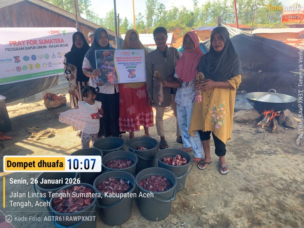 Aceh Tengah, Aceh—Donatur Dompet Dhuafa mendonasikan daging sapi kepada penyintas banjir bandang yang berada di Desa Umang, Kecamatan Linge, Kabupaten Aceh Tengah pada Senin (26/01/2026).