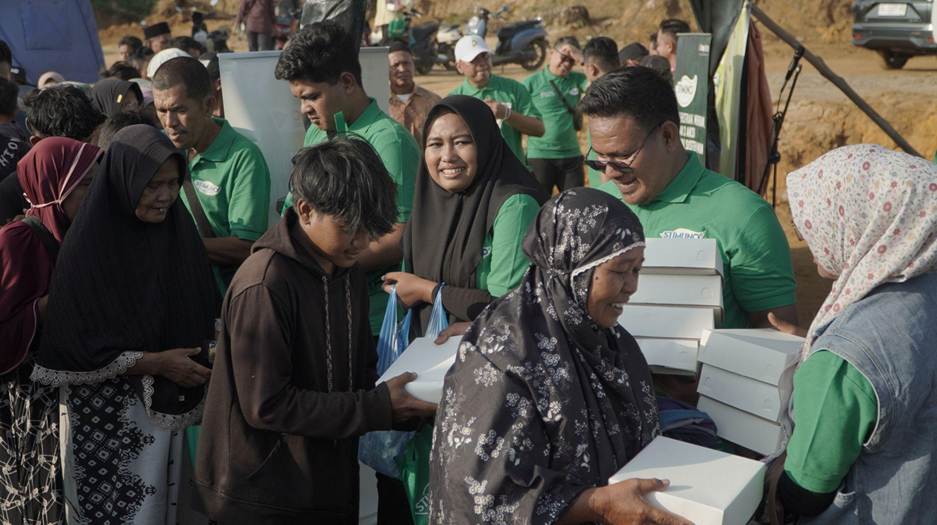 Sebanyak 500 porsi hidangan berbuka didistribusikan untuk penyintas yang menetap di pengungsian Kampung Durian, Kecamatan Rantau. Sementara 500 porsi lainnya disalurkan kepada warga terdampak di Dusun Melati, Desa Benua Raja, Kecamatan Rantau.