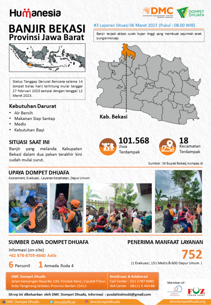 Bekasi—Disaster Management Center (DMC) Dompet Dhuafa kerahkan tim guna percepatan penanganan banjir yang terjadi di Bekasi pada Kamis (02/03/2023). Penjabat